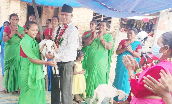बाँके बैजनाथ । बैजनाथ गाउँपालिका वडा न २ मा उपहार प्रदान कार्यक्रम सम्पन्न गरिएको छ । साना किसान उद्यमी सुदृढिकरण परियोजना अन्तर्गत गठन गरिएको मखमली महिला समुहका सदस्यहरुले बाख्रा उपहार प्रदान गरेको हुन।