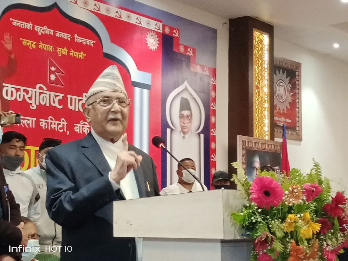 बाँके। नेकपा एमालेका अध्यक्ष तथा पूर्व प्रधानमन्त्री केपी शर्मा ओलीले सुखी नेपाली र समृद्ध नेपालको सपना एमालेले मात्र पूरा गर्न सक्ने बताएका छन् । बाँकेको नेपालगञ्जमा बुधबार आयोजना गरिएको बृहत कार्यकर्ता भेलालाई सम्बोधन गर्दै पूर्व प्रधानमन्त्री ओलीले सुखी नेपाली र समृद्ध नेपालको सपना पूरा हुन नदिने हरुले जालझेल गरेर सरकारबाट हटाएपनि अर्को निर्वाचनमा बहुमत ल्याएर सपना पूरा गर्ने दाबी गरेका हुन ।