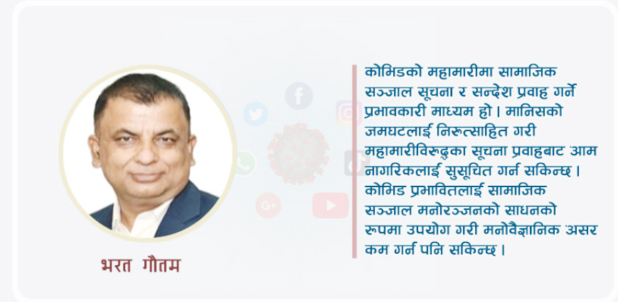 कोभिड महामारीको दोस्रो लहरपछि तस्रो लहर आउने अनुमान गरिएको छ। तेस्रो लहर झन् कठिन हुनसक्ने भन्दै वैज्ञानिकहरुले सचेत बनाइरहेका छन्। यस्तो स्थितिमा स्वास्थ्य सुरक्षासम्बन्धी जानकारी सबैका लागि उपयोगी हुन्छन्। ती सुचना प्रचारको सबैभन्दा सजिलो माध्यम समाजिक सन्जाल हो।