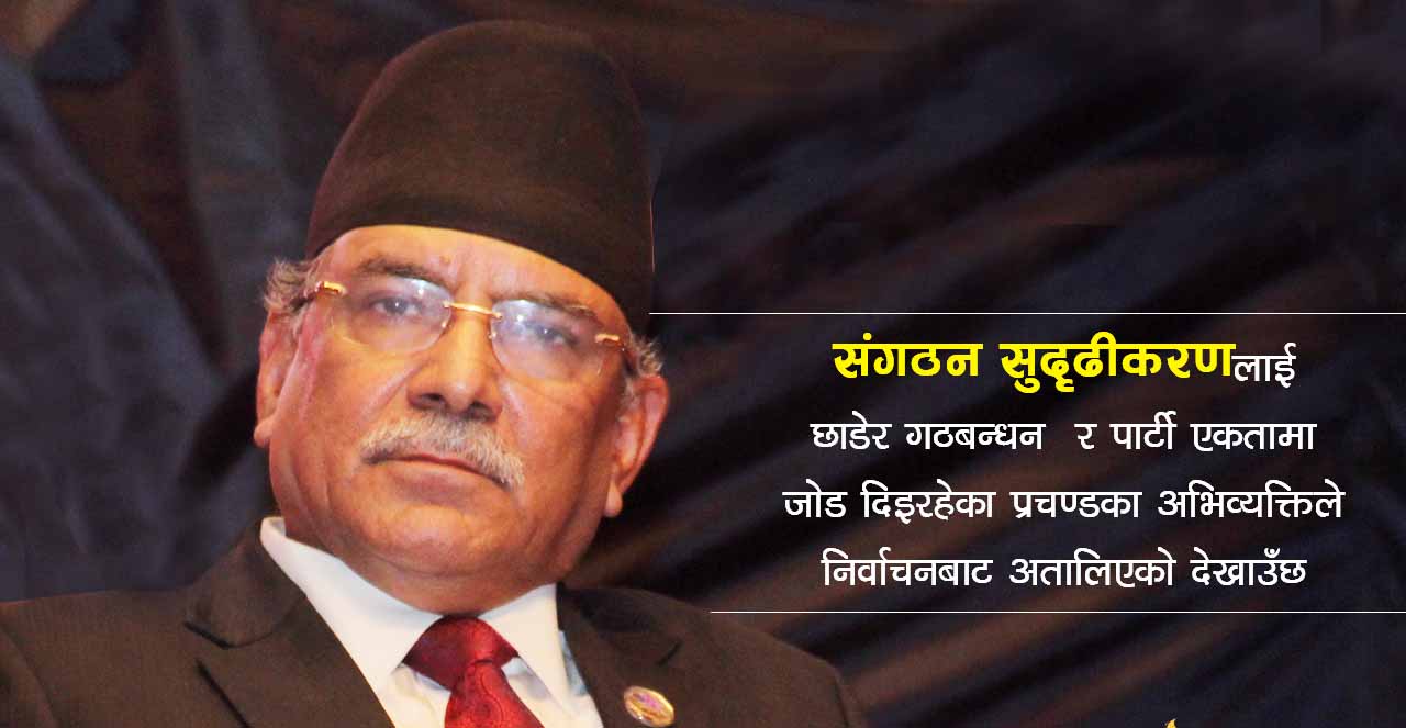 अहिले प्रचण्डको ध्यान पार्टीका गतिविधिमा केन्द्रित हुनुपर्ने हो तर, उनी चुनावी गठबन्धन र पार्टी एकताको विषयका वकालत गर्दै देश घुमिरहेका छन् ।