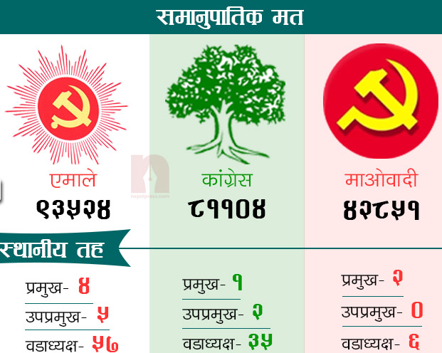 त्यसअघि स्थानीय चुनावको परिणाम हेर्दा पनि एमाले एक्लै सबैभन्दा ठूलो दल बनेको थियो । एमालेले महाधिवेशन गर्न लागेको पूर्वी चितवनका चारवटै नगरपालिकामा माओवादीले एउटा वडा सदस्य समेत जित्न सकेको थिएन भने एमालेले सबै नगरपालिका जितेको छ ।