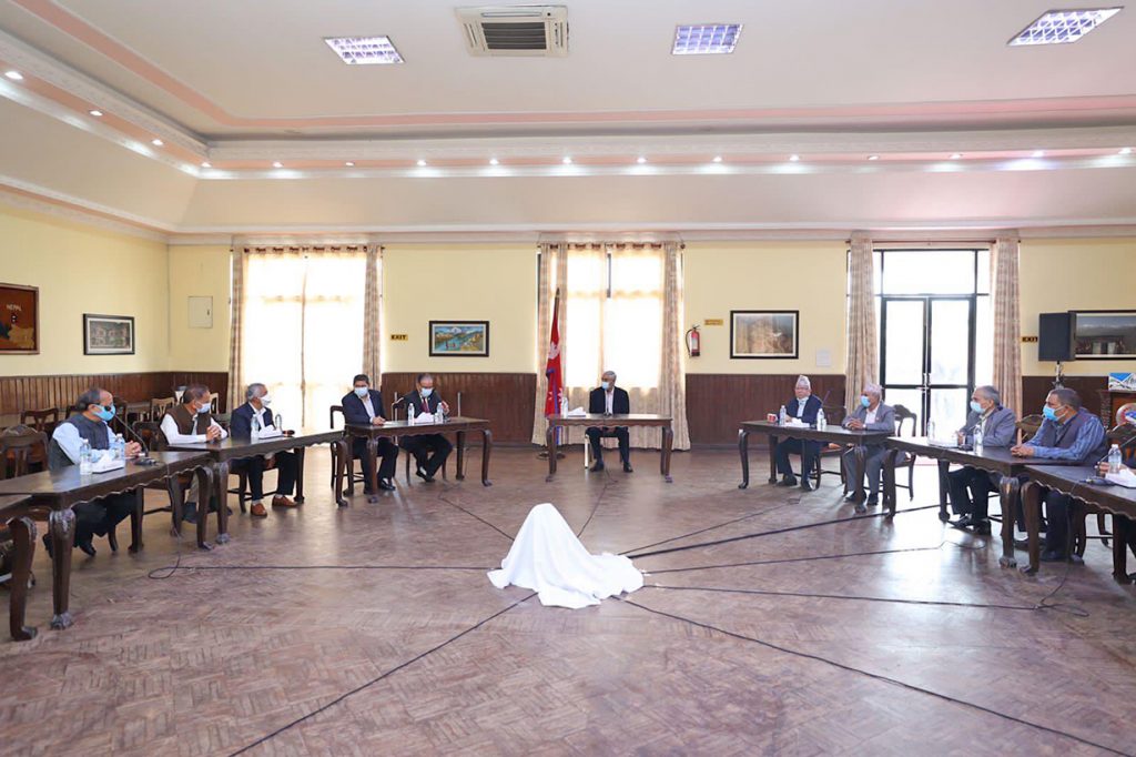 प्रधानमन्त्री निवास बालुवाटारमा बसेको सत्तारुढ गठबन्धनमा रहेका नेपाली कांग्रेस, नेकपा माओवादी केन्द्र, नेकपा एकीकृत समाजवादी, जनता समाजवादी पार्टी र राष्ट्रिय जनमोर्चाको बैठक सकिएपछि सर्वदलीय बैठक शुरु भएको हो ।