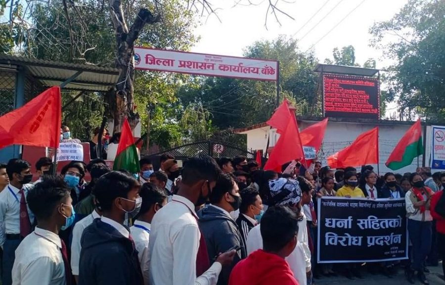 बाँके\ सरकारद्वारा सार्वजनिक यातायातमाको भाडामा दिईएको सहुलियत कार्यान्वयन गर्न माग गर्दै विद्यार्थीहरुले जिल्ला प्रशासन कार्यालय बाँके घेराउ गरेका छन् । विप्लव नेतृत्वको नेपाल कम्युनिस्ट पार्टी निकटको विद्यार्थी संगठन अखिल (क्रान्तिकारी) सहित बाँकेमा क्रियाशिल तीन वटा विद्यार्थी संगठनले बिहीवार प्रशासन कार्यालय घेराउ गरेका हुन् ।