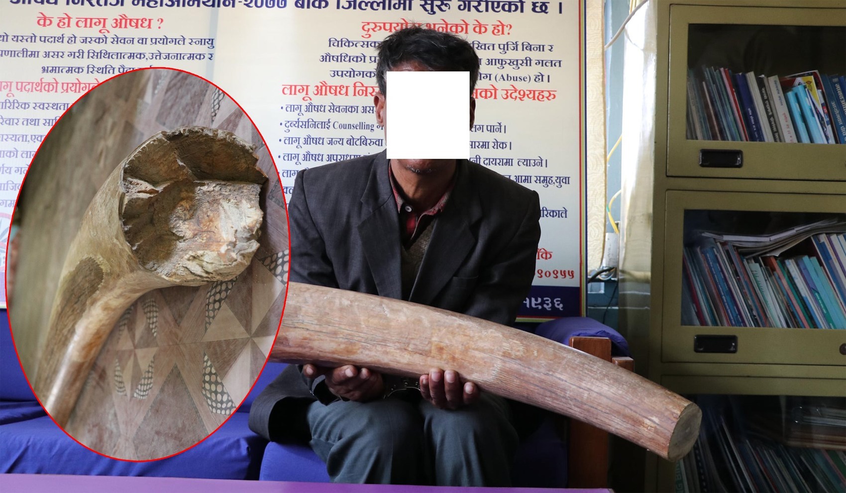 २९ ईन्च लम्बाई र १० किलो तौल रहेको हात्तिको दाँत जस्तो देखिने खैरो रंगको वस्तु बरामद गरि आवश्यक कारवाहीको लागी जिल्ला बन कार्यालय बाँकेमा पठाईएको प्रहरीले जनाएको छ ।