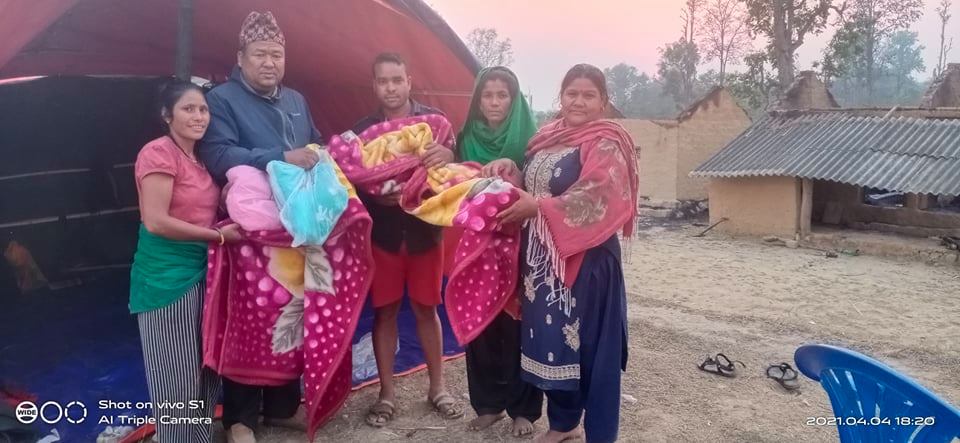 वडा अध्यक्ष रुप ब मल्लका अनुसार आगलागि बाट पिडित लाई तत्काल राहत स्वरुप ब्यान्केट १ थान झुल २ थान तिर्पाल १ थान बाल्टी १ थान जग १ थान खाना पकाउने भाडा लगाएत आवश्यक सामाग्री उपलब्ध गराइएको वडा अध्यक्ष रुप ब मल्लले जानकारी गराए ।
