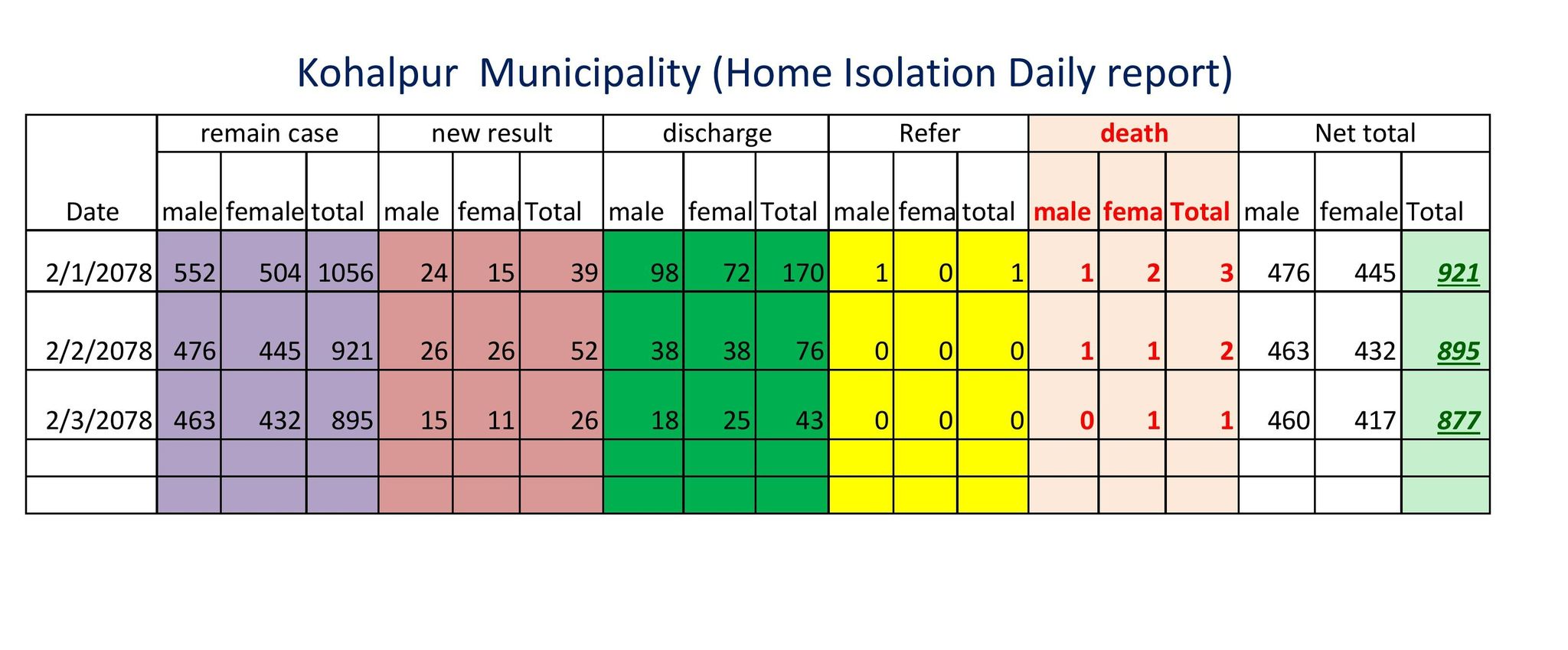 यसै गरी चार सय ६० जना पुरुष र चार सय १७ जना महिला गरी कूल आठ सय ७७ होम आइसोलेसनमा छन् ।