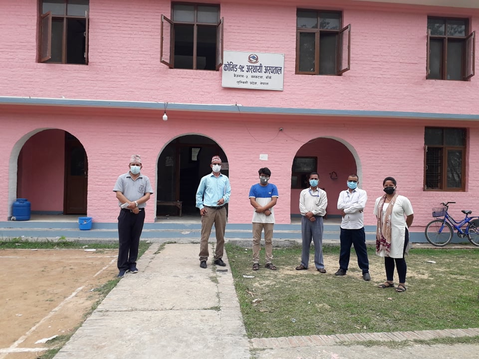 गत बैशाख १२ गतेबाट संचालनमा ल्याईएको उक्त अस्थायी कोभिड अस्पतालमा । उनीहरुका लागी पनि खानपानको ब्यवस्था मिलाईएको छ । यहाँ भर्ना भएका २ जनालाई सिलिण्डर मार्फत अक्सिजन दिईएको छ । यो अस्थायी अस्पतालमा २० वटा वेडको ब्यवस्थापन मिलाईएको डा. प्रदिप चौधरीले जानकारी दिए ।