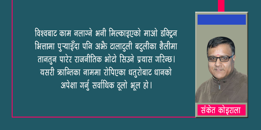 यसरी क्रान्तिका नाममा रोपिएका धतुरोबाट धानको अपेक्षा गर्नु सर्वाधिक ठूलो भूल हो। अनि धान नफल्दा पुर्पुरोलाई धिक्कार्ने काम हुन्छ। विकास वादले नभई इच्छाशक्तिले हुन्छ भन्ने नर्सरी बालकले बुझेको सत्य तिनका हजुरबा पुस्ताको मथिंगलमा पसेको छैन। जीवनको पूर्वार्धलाई उपेक्षा गरियो भने उत्तरार्धमा पुगेर बुझेको सत्य काम लाग्दैन। भूपि शेरचनको कविताले अरूलाई मिठास दियो। तर जीवनको उत्तरार्धमा उनले निष्कर्ष निकाले- आफूलाई दुईवटा ‘क’ ले बिगारे। जसको अर्थ थियो- कविता र कम्युनिस्ट। जीवनभर नास्तिकवादमा कलम चलाउने लक्ष्मीप्रसाद देवकोटाले ब्रह्मनालमा पुगेपछि भने, ‘आखिर श्रीकृष्ण रहेछ एक।’ विश्व राजनीतिमा निरंकुशताको सजीव पात्र सम्झिइने हिटलर कालिदासको शाकुन्तल महाकाव्यका प्रशंसक मात्र भएनन्, आर्य संस्कृतिको प्रतिरक्षा गरे। त्यसैले राजनीतिका नाममा मनमा एकथोक, बोलाई अर्को र गराई तेस्रो खाले संस्कृति नत्यागेसम्म हाम्रा लागि राजनीति सेवा हैन, धोकाको अर्को नाम हुने निश्चित छ।