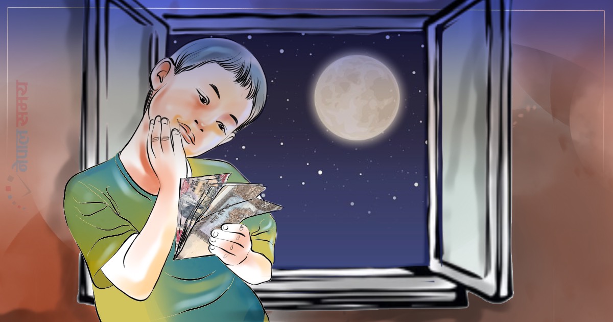 ‘बाबु, आज मंगलबार। मंगलबारका दिन आफूसँग भएको पैसा कसैलाई दिनु हुँदैन। आजको रात तिमीसँगै राख। भोलि म राखिदिऊँला, है?’ पैसा लिनदिनका लागि मंगलबार शुभ हो वा होइन, मलाई केही थाहा थिएन। मलाई एउटा बहाना चाहिएको थियो। त्यही वाक्य फुर्यो।