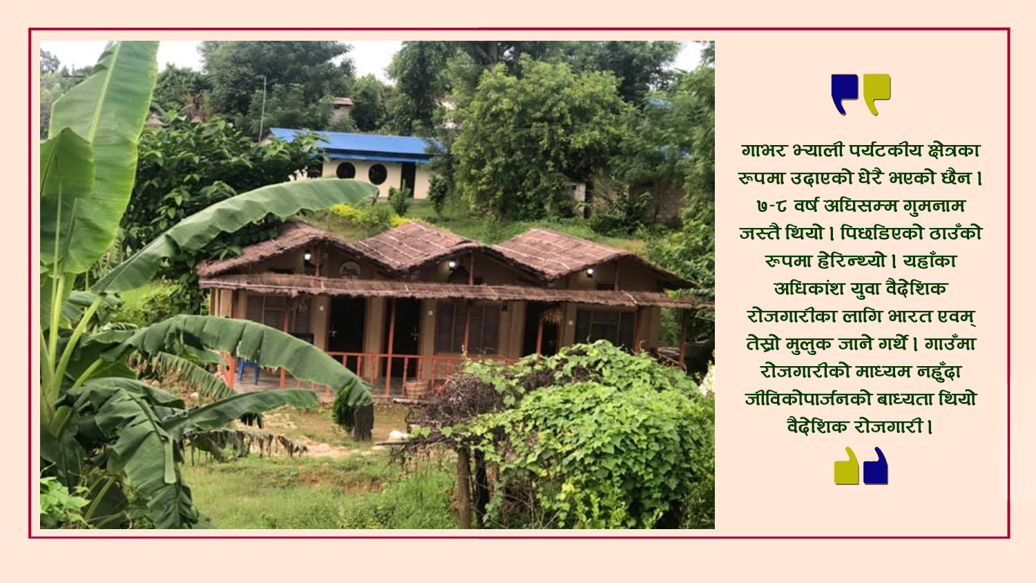 जंगलले घेरिएको गाभर भ्यालीमा एक घरदेखि अर्को घरसम्मको दूरी निकै टाढा छ । त्यसैले त सुगम जिल्लाको दुर्गम ठाउँ जस्तो बनेको थियो गाभर । अझ रोचक त के भने हिमाल, पहाड र तराईका समुदायको मिश्रित बस्ती छ यहाँ । चालचलननै फरक । त्यो गाउँमा पुग्नै कठिन । न सडक थियो न त आवश्यक परेका बेला एम्बुलेन्स नै जान सक्थ्यो । तर, अहिले भने गाभरको रूप फेरिएको छ । गाभरमा कायापलट ल्याउने प्रमुख माध्यम हो, होमस्टे ।