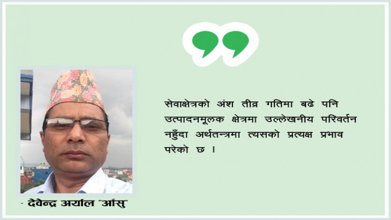 सेवाक्षेत्रको अंश तीव्र गतिमा बढे पनि उत्पादनमूलक क्षेत्रमा उल्लेखनीय परिवर्तन नहुँदा अर्थतन्त्रमा त्यसको प्रत्यक्ष प्रभाव परेको हो । अर्थतन्त्रमा प्राथमिक क्षेत्रको योगदान घटे पनि उत्पादनमूलक क्षेत्र विस्तारको गति बढेको भए त्यसको खासै फरक पर्दैन थियो । उत्पादनमूलक क्षेत्रको सट्टा सेवा क्षेत्रको विस्तार धेरै हुँदै गए पछि आन्तरिक उत्पादन र रोजगारी सृजनामा सकारात्मक प्रभाव नपरेका कारण नै झन्झन् परनिर्भरता बढ्दै गएको हो ।