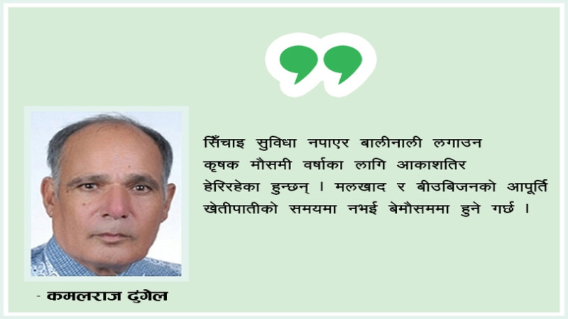अर्थतन्त्रले हालसम्म दिगो विकास हुने गरी अरू क्षेत्रमा फड्को मार्न सकेको छैन । कृषि नै अर्थतन्त्रको मेरूदण्डका रूपमा रहेको छ । किसानलाई आवश्यक पर्ने मलखाद र बीउबिजन उपलब्ध गराउन सरकारले वचनबद्धता गरेको हुन्छ । यसका लागि गहकिलो धनराशीको पनि बाँडफाँट गरिएको देखिन्छ । तर, खेतीपातीको समयमा मलखादको मागअनुसार आपूर्ति हुँदैन । मलजल र सिँचाइ अभावले किसान जमीन बझ्याउन बाध्य छन् । यसैले किसानलाई असारे चटारोले पिरोल्न छोडेको छ । तर, यही चटारो विकास कार्यमा संलग्न हुने सरकारी क्षेत्रका ठेकेदारहरूलाई परेको देख्न सकिन्छ । २ महीनाको अवधिमा काम सिद्ध्याएर भुक्तानी लिने, बिलभर्पाई बनाउने र भुक्तानी लिन सम्बद्ध निकायमा धाउने । जेहोस्, असार कसै न कसैलाई लाग्नुपर्ने हो, किसानको सट्टा ठेकेदारलाई लागेको छ ।