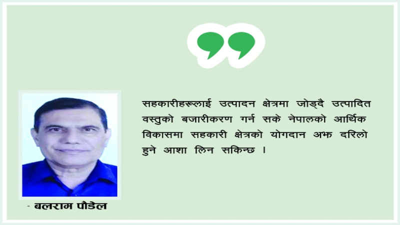 नेपालको विकट भौगोलिक परिवेशमा वित्तीय पहुँचको आधार ग्रामीण सहकारीहरू एक सशक्त माध्यम हो । सहकारीहरूलाई उत्पादन क्षेत्रमा जोड्दै उत्पादित वस्तुको बजारीकरण गर्न सके नेपालको आर्थिक विकासमा सहकारी क्षेत्रको योगदान अझ दरिलो हुने आशा लिन सकिन्छ । नेपालका युवालाई यस क्षेत्रमा आबद्ध गराउन युवालक्षित र रोजगारमूलक उद्यममा सहभागी गराउन यस क्षेत्रलाई सरकारबाट नीतिगत व्यवस्थामा प्राथमिकता दिन जरुरी छ ।