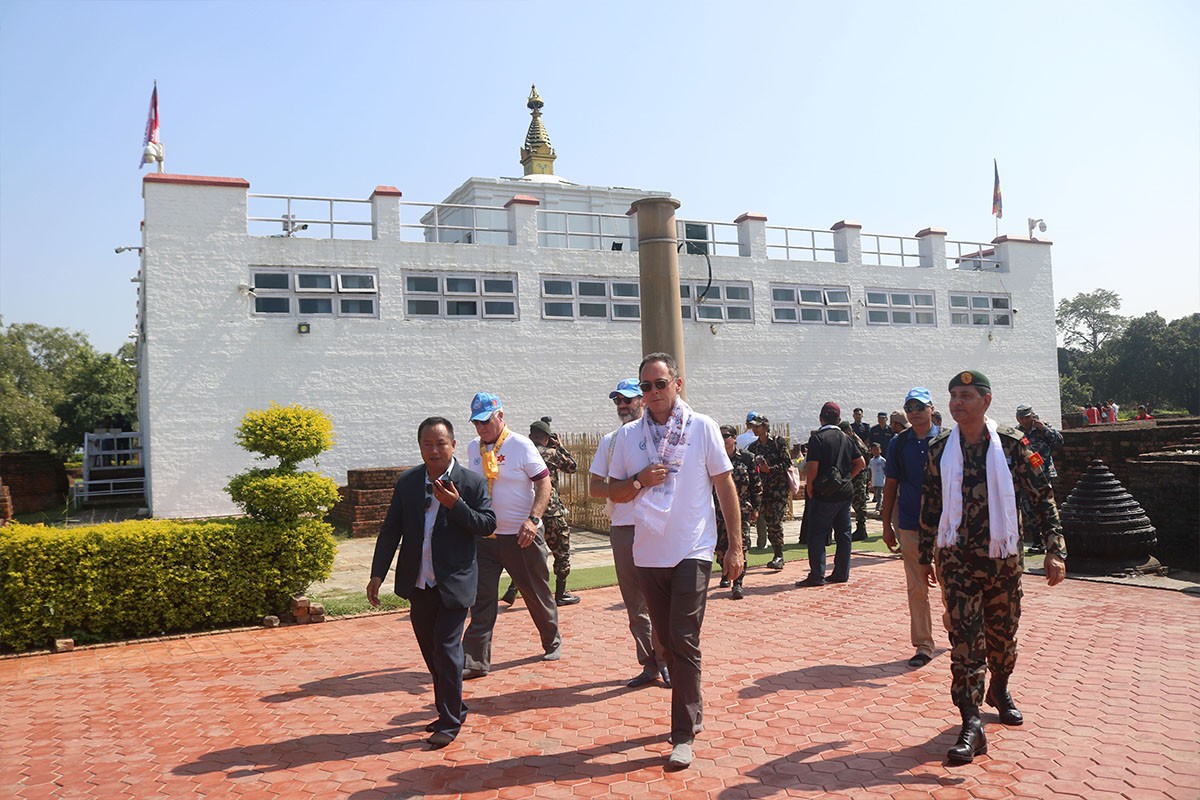 २४ अक्टोबर अर्थात संयुक्त राष्ट्र संघ दिवसका अवसरमा नेपाली सेनाको आयोजनामा सेमिनारका सन्दर्भमा नेपाल आएका राष्ट्र संघमा कार्यरत सैनिक टोली र विश्व शान्तिका लागि खटिएका देशका सैनिकहरु लुम्बिनी भ्रमणमा आएका हुन। विश्वमा शान्तिका लागि काम गर्ने संयुक्त राष्ट्र संघ र त्यहाँ कार्यरत सैनिकहरुलाई विश्वशान्तिको मुहान लुम्बिनीमा स्वागत गर्न पाउदा खुशी लागेको जनसम्पर्क अधिकृत राईले बताए।