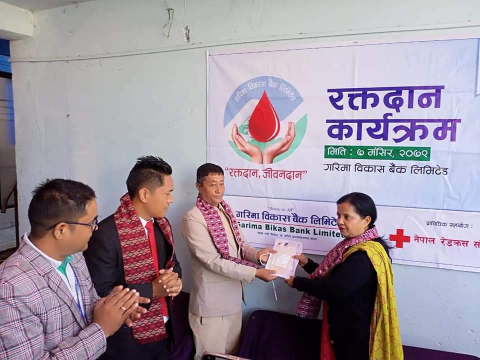 कोहलपुर / गरिमा विकास बैंकले काेहलपुरले आफ्नो १६ औं वार्षिक उत्सव मनाएकाे छ । आफ्नो बार्षिक उत्सवमा गरिमाले रक्तदान कार्यक्रम समेत गरेकाे छ ।