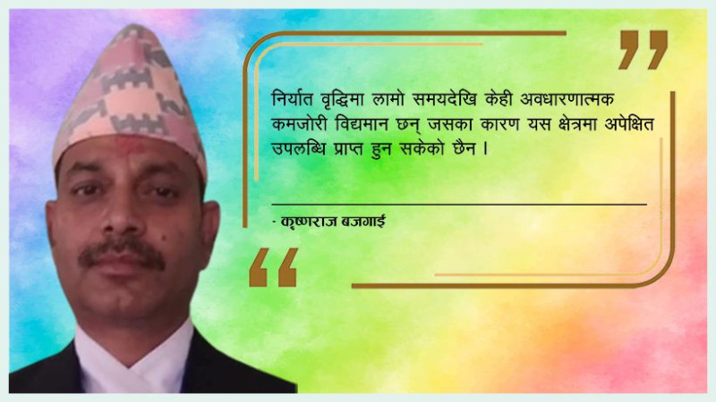निर्यात वृद्धिमा लामो समयदेखि केही अवधारणात्मक कमजोरीहरू विद्यमान छन् जसका कारण यस क्षेत्रमा अपेक्षित उपलब्धि प्राप्त हुन सकेको छैन । तेस्रो मुलुक केन्द्रित हुनुपर्ने निर्यात प्रवर्द्धन रणनीतिमा विमुख हुँदा निर्यातले अपेक्षित गति लिन नसकेको हो ।