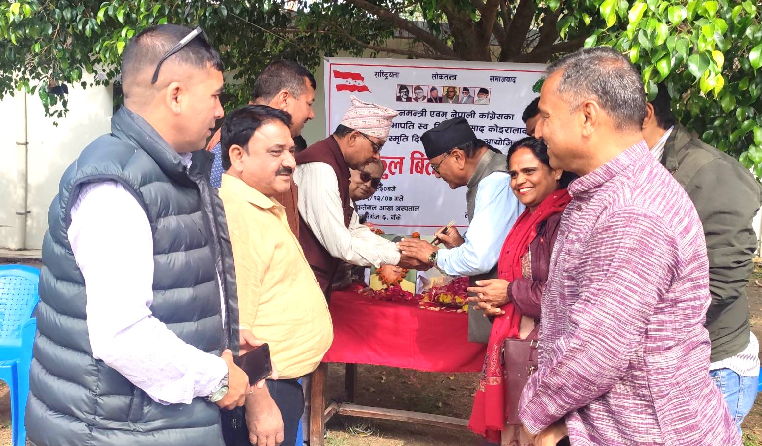 नेपाली काँग्रेस क्षेत्र नम्बर २ का क्षेत्रीय सभापति रमेशकुमार गुप्ताले कोइरालाको स्मृति दिवसमा बाँके काँग्रेसले बिरामीलाई फलफूल वितरण गरेर स्मरण गरेको भन्दै खुशी व्यक्त गरे ।