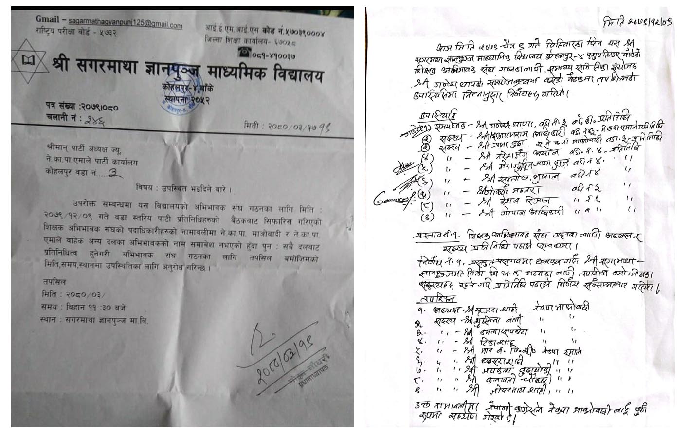बिद्यालयका प्रधानाध्यापक मोहन चौधरीले चैत्र ९ गते वडा स्तरीय पार्टी प्रतिनिधिहरुको बैठकले सिफारीस गरेका शिक्षक अभिभावक संघको पदाधिकारीहरुको नामावलीमा नेकपा एमाले र माओबादी बाहेक अन्य दलका अभिभावकहरु समाबेश नभएको भन्दै बिद्यालय क्षेत्रका बिभिन्न दलहरुलाई पत्राचार गरेपछि शैक्षिक क्षेत्र तरंगित भएको छ ।