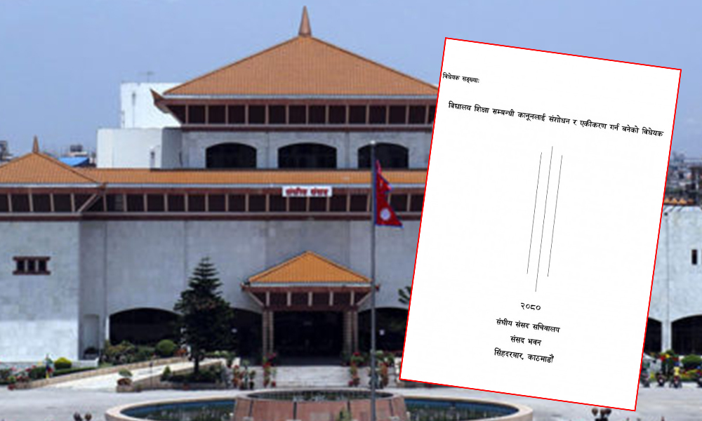 बाँके\नेपाल सरकारले बुधबार प्रतिनिधि सभाको सचिवालयमा ‘विद्यालय शिक्षा विधेयक, २०८०’ दर्ता गराएको छ । राष्ट्रिय शिक्षा पद्धतिको योजना, २०२८ मा आधारित ५२ वर्ष पुरानो ‘शिक्षा ऐन, २०२८ लाई विस्थापित गर्ने गरि ल्याइएको विधेयकमा अब हाउसभित्र दफावार छलफल हुनेछ र सम्भवत हुबहु नै स्वीकृत हुने आंकलन देखिन्छ ।