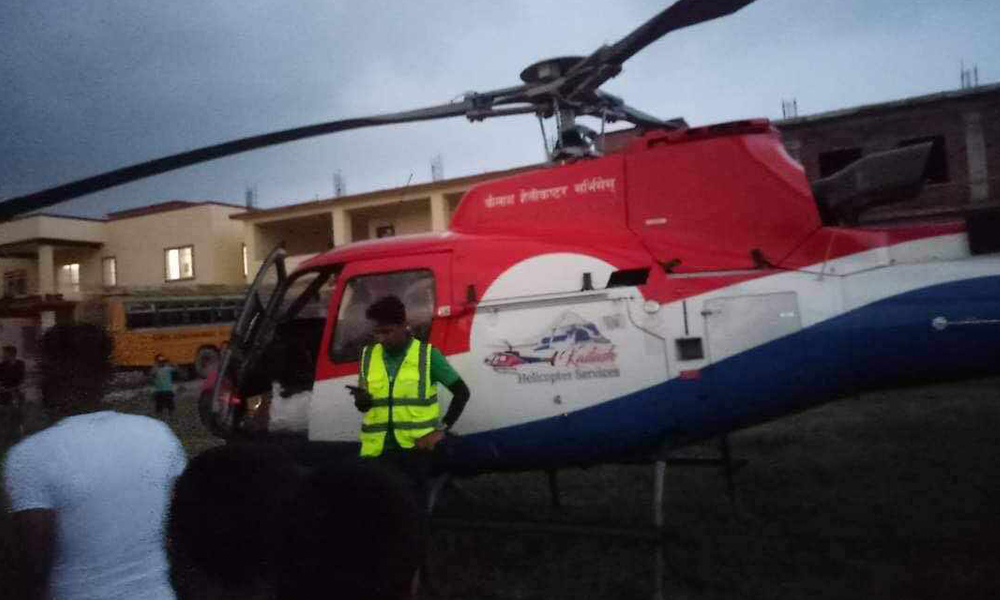 हुम्लाबाट पोखरा जाँदै गरेको कैलाश हेलिकप्टर सर्भिस कम्पनीको हेलिकप्टर खराब मौसमका कारण अवतरण गरिएको इलाका प्रहरी कार्यालय भालुबाङले जनाएको छ । पाइलट, इञ्जिनियर र दुईजना यात्रुसहित चार जना सवार रहेको प्रहरीले बताएको छ ।