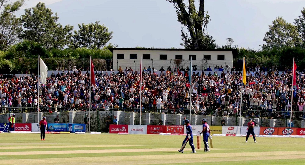 नेपालका लागि ओपनर कुशल भुर्तेलले अर्धशतक प्रहार गरे। उनले २९ बलमा ६ चौका र ३ छक्का हिर्काएका थिए। अर्धशतक प्रहार गरेलगत्तै उनी तेस्रो विकेटको रुपमा जाहूर खानबाट ७.३ बोल्ड भएका थिए।नेपालले ६ ओभरको पावरप्लेमा १ विकेटको क्षतिमा ६१ रन र पहिलो १० ओभरमा ३ विकेटको क्षतिमा ९५ जोडेको थियो।