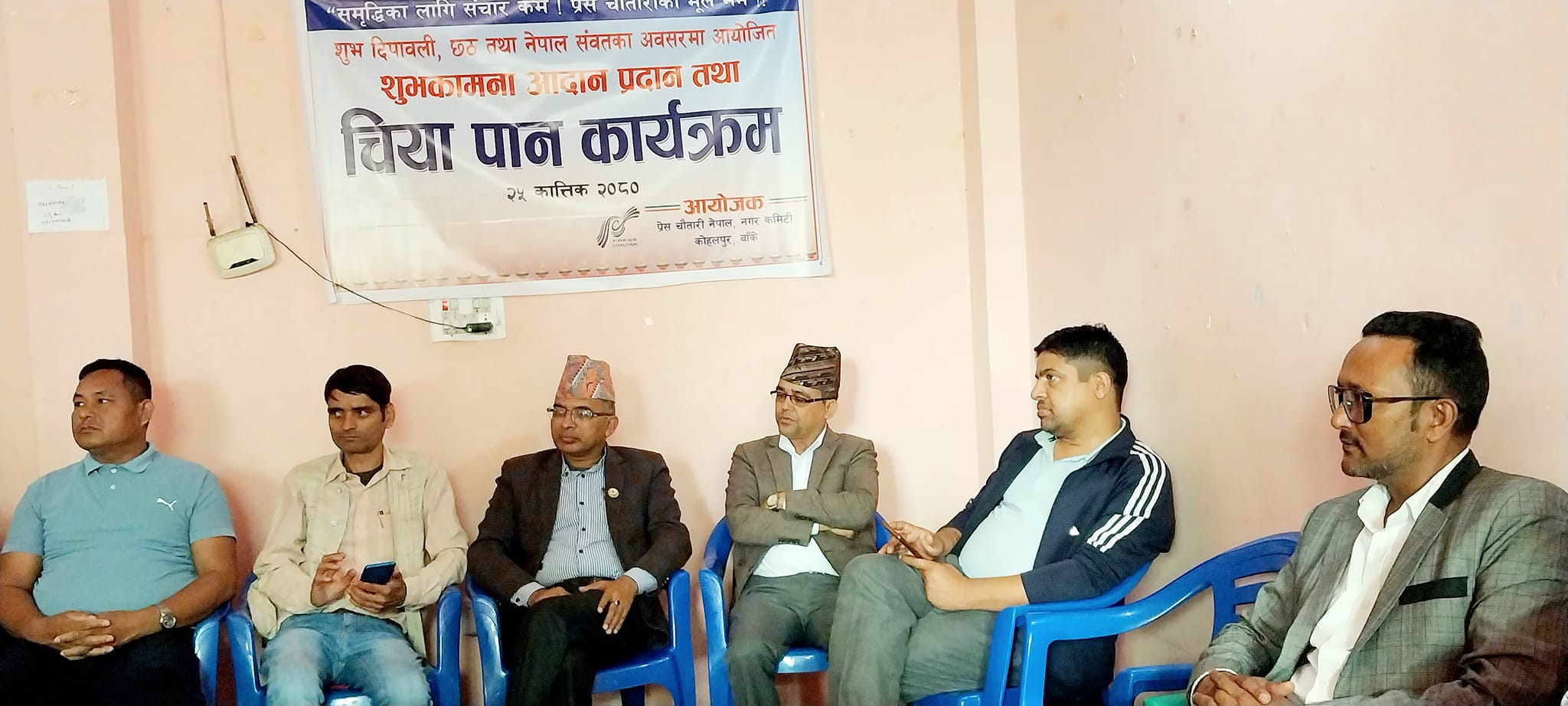 कोहलपुर\ प्रेस चौतारी कोहलपुर नगर कमिटीले शुभ दिपावली ,छठ तथा नेपाल संबतका अवसरमा शुभकामना आदान प्रदान कार्यक्रमको आयोजना सम्पन्न गरेको छ ।