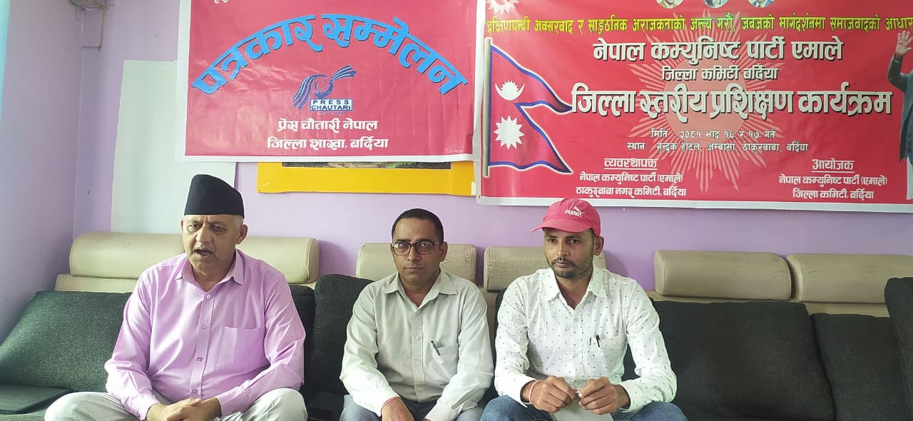 नेकपा एमाले बर्दियाले आयोजना गरेको पार्टी प्रशिक्षण कार्यक्रमलाई सम्बोधन गर्न आउनुभएका मुख्यमन्त्री आचार्यसँग प्रेस चौतारी बर्दियाले आयोजना गरेको पत्रकार सम्मेलनमा बर्दियाको विकासको धरोहरको रुपमा रहेको कर्णाली प्रदेशसँग जोड्ने भुरिगाउँ तेलपानी सडक निर्माणलाई आगामी वर्षदेखि प्राथमिकतामा राखेर अगाडी बढाउने बताउनुभयो ।