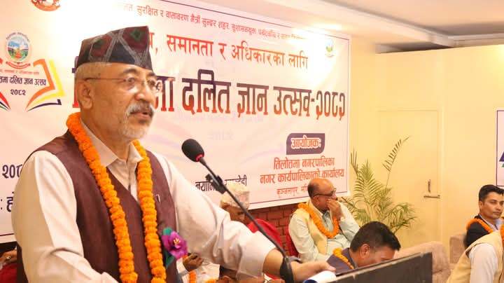 रुपन्देही\रुपन्देहीको तिलोत्तमा नगरपालिकामा दोस्रो संस्करणका रुपमा ‘तिलोत्तमा दलित ज्ञान उत्सव २०८२’ सुरु भएको छ । स्थानीय सरकारको सक्रियतामा दुईदिने ज्ञान उत्सवको पूर्वमन्त्री एवं रुपन्देही क्षेत्र न. १ का प्रतिनिधिसभा सदस्य छविलाल विश्वकर्माले शुक्रबार उद्घाटन गर्दै तिलोत्तमा नगरपालिकाले दलित ज्ञान उत्सव गरेर मानव मर्यादाको नगरका रुपमा आफूलाई उभ्याउन सफल भएको भन्दै अब व्यवहारमै विभेद अन्त्य गर्ने अभियानमा लाग्न अपिल गरे ।