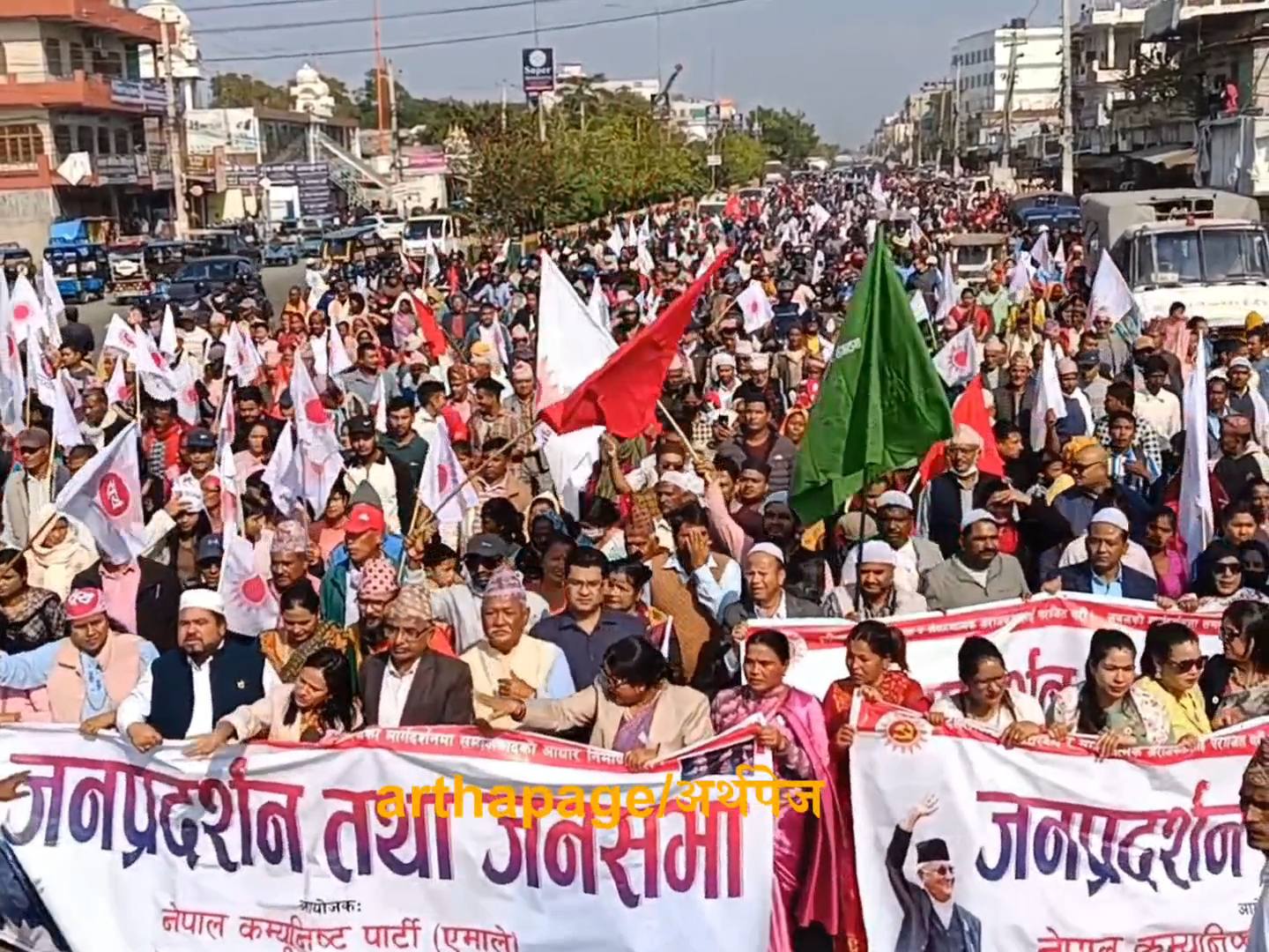 पार्टीले आयोजना गरेको प्रतिगामी षडयन्त्रका विरुद्ध जनपरिचालन कार्यक्रम अन्तरगत नेपालगञ्जको जनसभालाई सम्बोधन गर्दै महासचिव पोखरेलले वर्तमान देशको संकटको निकास एमालेको अगुवाईमा मात्र सम्भाव रहेको उल्लेख गरे ।भदौ २३ र २४ गतेको तोडफोड र विध्वंस नेपाल राज्यलाई कमजोर पार्नका लागि रचिएको षडयन्त्र भएको पोखरेलको भनाइ छ ।