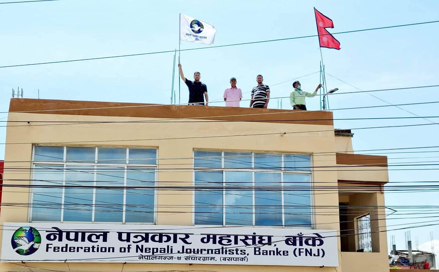 बाँके । नेपाल पत्रकार महासंघ बाँके शाखाले नेपालको राष्ट्रिय झण्डा र पत्रकार महासंघको झण्डा...