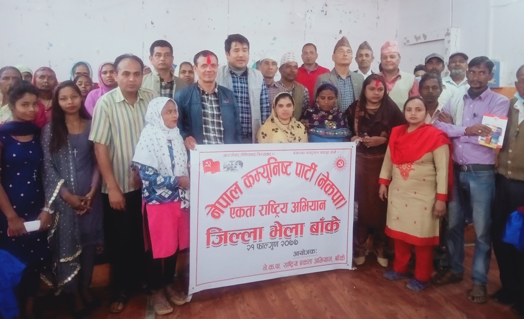 बाँके बैजनाथ । नेपाल कम्युनिष्ट पार्टी (नेकपा) एकता राष्ट्रिय अभियानको जिल्ला भेला बाँकेको नेपालगञ्जमा...