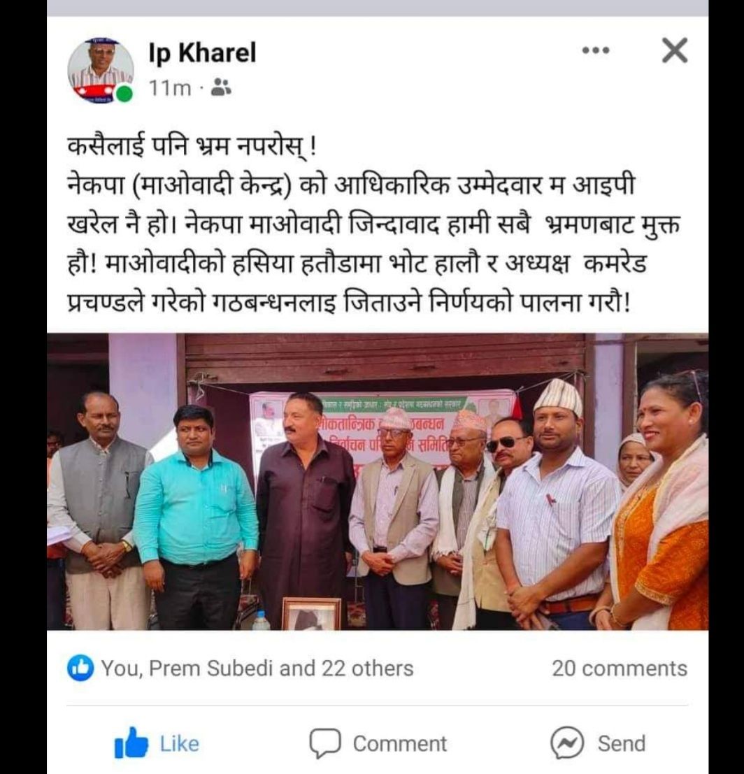 कोहलपुर \तस्विर १ ,बाँके क्षेत्र न १ बाट एमाले प्रतिनिधि सभा उम्मेदवार सुर्य ढकाल रात्री ८ः३० को...
