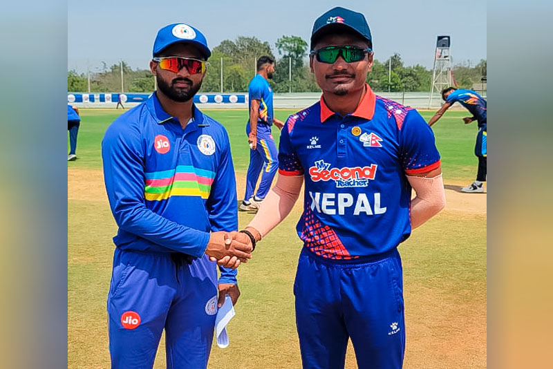 काठमाडौँ:एसएमएस फ्रेन्डसिप कप त्रिकोणात्मक सिरिजअन्तर्गत गुजरातविरुद्धको खेलमा नेपाल ८...