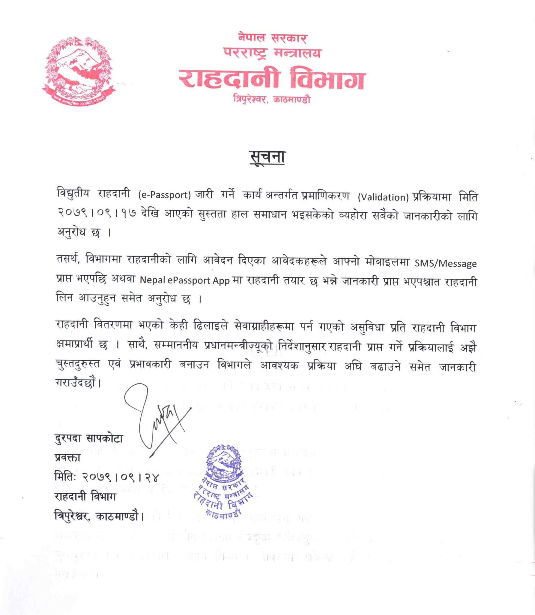 बाँके\ राहदानी विभागको विद्युतीय पासपोर्टको प्रमाणिकरणमा पुस १७ गतेदेखि आएको समस्या समाधान...